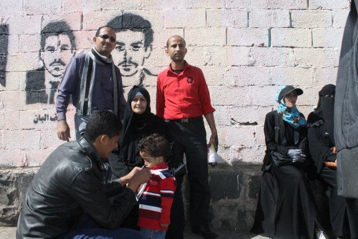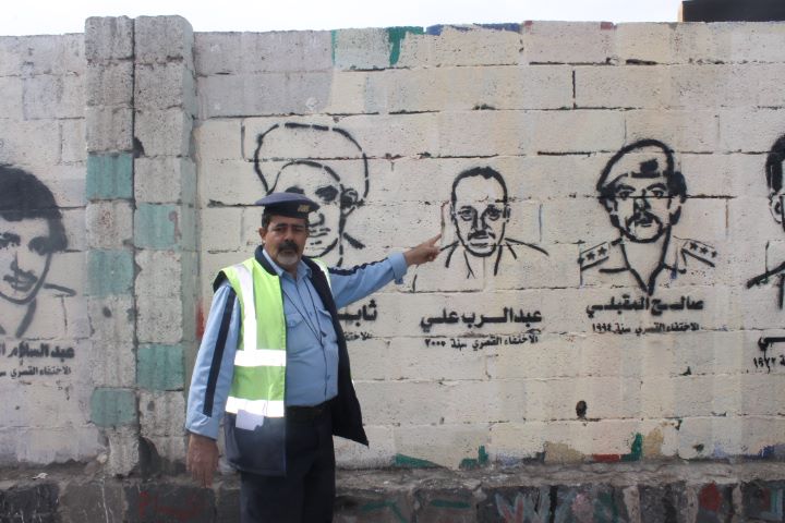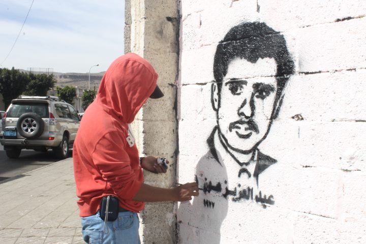 عدسة عبدالكريم المؤيد التاريخ: الخميس 20ديسمبر 2012م المكان:جدار في شارع حدة جوار صالة الخيمة. على الرغم من المضايقات التي حدثت اليوم لكن حملة “الجدران تتذكر وجوههم”استطاعت ان تكمل أسبوعها الخامس عشر من العمل المستمر. على من يملك معلومات عن مختفيين قسريا يرجى منه إرسالها على الإيميل: muradsubay7@gmail.com شاكرين تعاونكم.