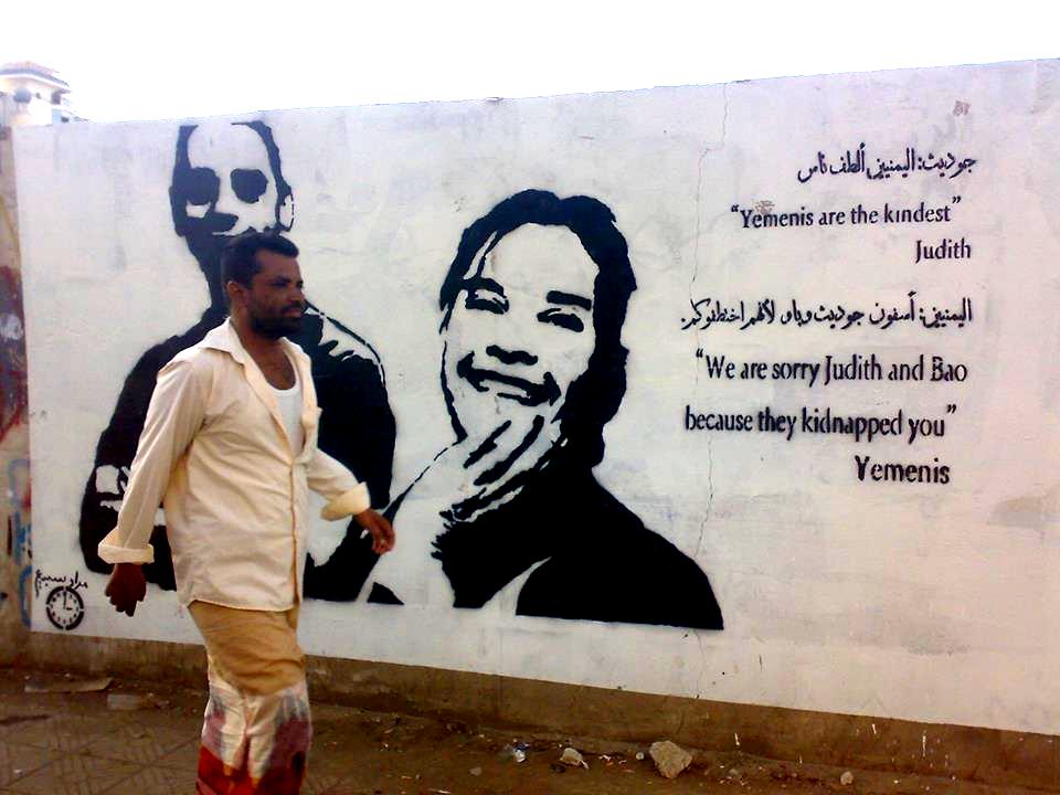 قدمت الصحفية الهولندية “جوديث سبيغل” تقريرا رائعا لإذاعة “هولندا العالمية” عن حملة “الجدران تتذكر وجوههم” التي رسمت وجوه المختفين القسريين على جدران العاصمة صنعاء وعدة مدن يمنية أخرى قبل عدة أشهر. كان عنوان تقرير “جوديث” حول المختفين اليمنيين قسراً هو: “أرواح بالأبيض والأسود”، وهما اللونان اللذان اعتمدهما الرسام مراد سبيع وزملاؤه في رسم وجوه المخفيين على الجدران في حملة أستمرت 7 أشهر. هل كانت جوديث تتخيل لحظتها أن يوماً سيأتي عليها وهي على أحد جدران العاصمة مرسومة مع زوجها “باو بريدتسن”، بيد الرسام نفسه، و”بالأبيض والأسود” أيضاً في جدارية تسلط الضوء على ظاهرة إختطاف الأجانب في اليمن من خلال حادثة إختطافهما؟! لا أظن. جوار “جوديث”، مقولة لطيفة وحنونة لها هي المدافعة عن اليمن واليمنيين في وسائل الإعلام الغربية وفي لقاءاتها الخاصة كما يتفق من أعرف من معارفها. ومع أن جريمة إختطافها وزوجها في صنعاء قبل شهرين ونصف أكبر من كل إعتذار ولا تغتفر، إلا أن إعتذارا مفترضا من كل اليمنيين الرافضين لإختطافها وزوجها تقدمه هذه الجدارية للزوجين الهولنديين على أحد شوارع صنعاء. ولعلها تعبر عن صوت وأسف الغالبية من اليمنيين كي لا أقول كل اليمنيين لأنه ما من إنسان سوي يقبل بخطف إمرأة وزوجها، وأجنبيين كمان، ما من إنسان يقبل بهذا. سألني اليوم أحد المارة عن المكتوب في الجدارية والمرسومين. كان رجلا خمسينيا يرتدي الزي القبلي ولا يبدو أنه نال حظا من التعليم. قلت له إنها صحفية هولندية تحب اليمن وقالت عن اليمنيين إنهم “ألطف ناس” ثم تم اختطافها على أيدي خاطفين يمنيين. كانت ردة فعله معبرة، امتلأت بالألم ولعن الخاطفين مع وصفه لهم بـ”الطراطير”، وغادر على الفور غاضبا. حدث هذا ظهيرة اليوم الخميس في قلب العاصمة صنعاء، بعد أن انتهى مراد سبيع من رسم الجدارية في شارع الزبيري أمام وزارة الشباب والرياضة، في إطار حملة “12 ساعة” التي تسعى من خلال جدارية جوديث وزوجها الى تسليط الضوء على ظاهرة إختطاف الأجانب في اليمن. بالأبيض والأسود با جوديث، بالأبيض والأسود. كم يبدو هذا عنوانا لقصتك مع جدران اليمن و”نذالة” بعض أبنائها. لكننا سننتظر تحريرك من الإختطاف المشين مع زوجك يا جوديث، سننتظر تحريركما من جدار الإختطاف ونأمل أن تتحرر اليمن يوما من جدار الخزي.
