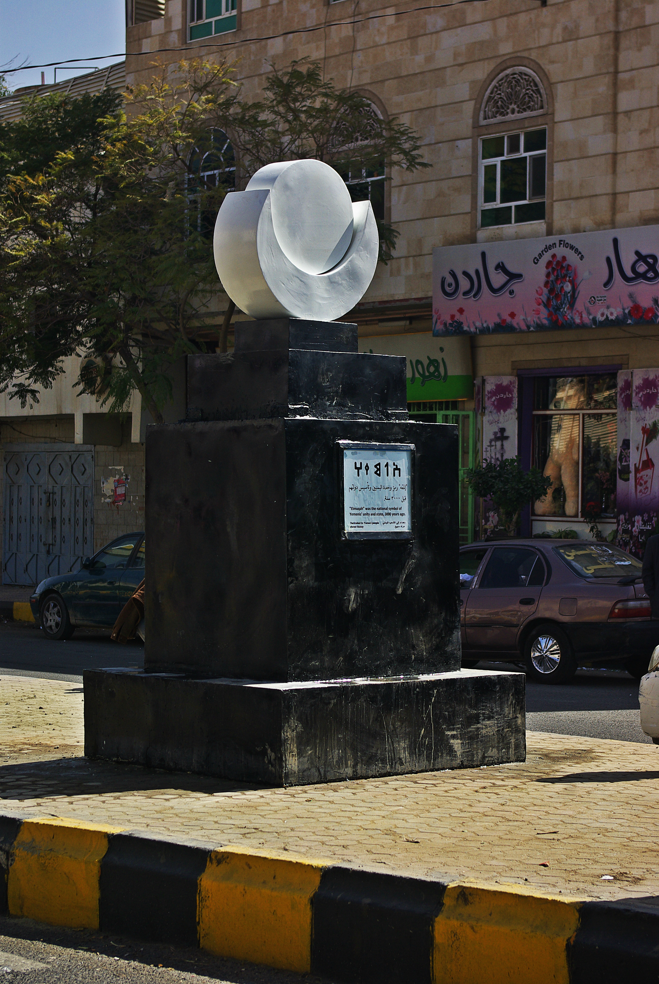 After six months of preparation, artist Murad Subay, with the participation of some Yemeni young artists and civil activists, put-up “Elmuqah” sculpture, an ancient symbol of people and state national unity, as his first sculpture work in Algeria Street in the capital of Sana’a on 15 January 2015. By then, Subay announced the launching of Dawn’s Sculpture Campaign, which is the first campaign on street-sculpture in Yemen.