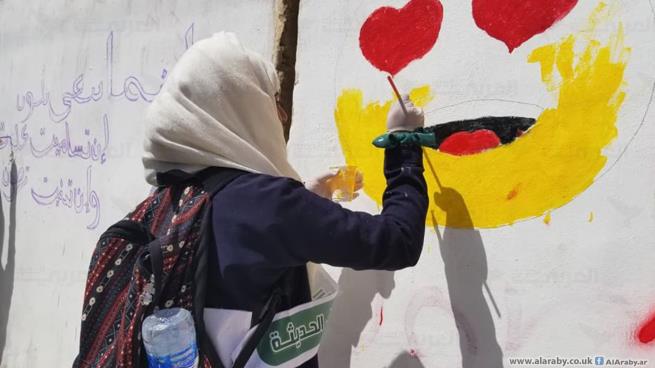 وفي محافظة تعز أيضاً خرجت طالبات المدارس في حملة للرسم على الجدران أيضاً، حيث رسمن أعلام اليمن وعبارات تدعو إلى السلام، كما لم تخل لوحاتهن من التفنن في كتابة العبارات الوطنية، تزامناً مع اليوم العالمي للرسم.