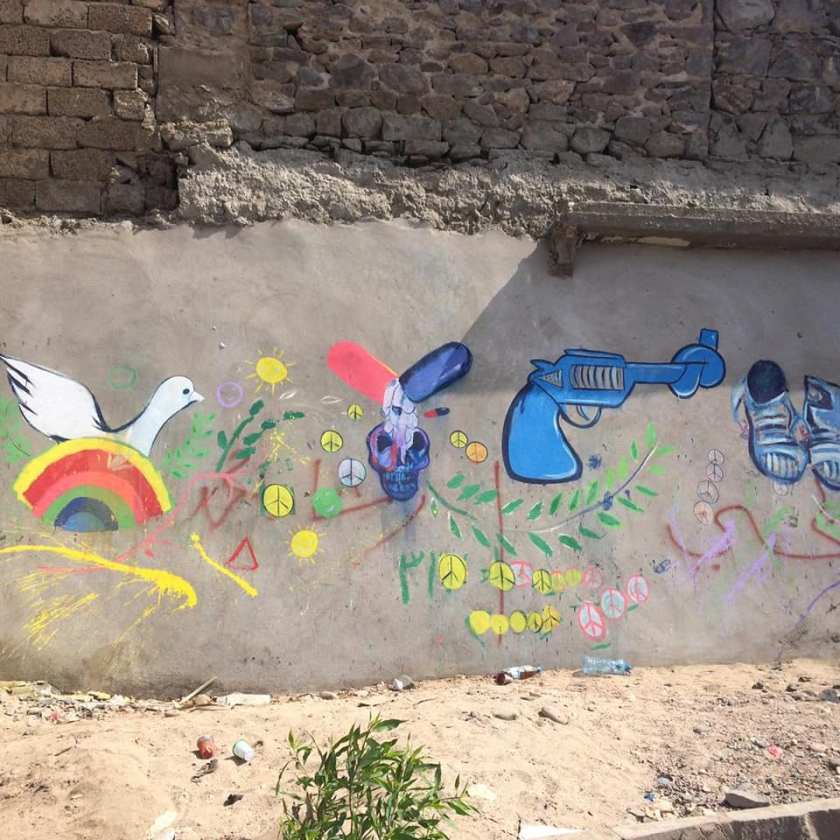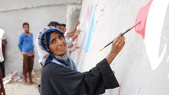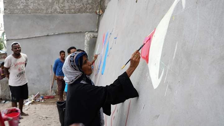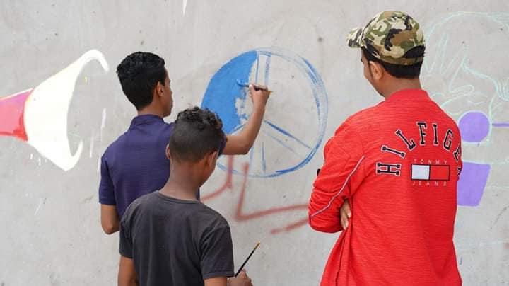 Photos for children, young and old people painting the wall, in “Aden” city, in the annual event #Open_Day_Of_Art, that held by the amazing artist “Alaa Rubil“