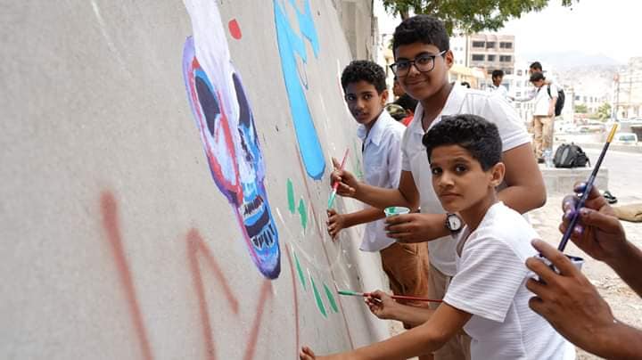 صور لأطفال ووشباب وشابات يرسموا في مدينة “عــــدن” في الحدث السنوي #اليوم_المفتوح_للفن، والذي أقامه الفنان الرائع “عــلاء روبل”, 14 مارس 2019.
