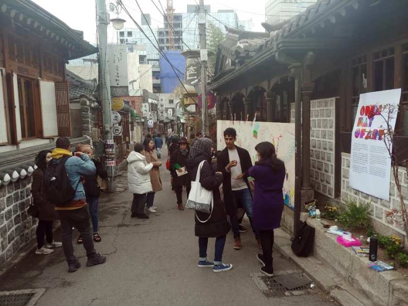 صورة جماعية من الحدث السنوي #اليوم_المفتوح_للفن، والذي أقامه “إتحاد الطلاب اليمنيين” بالتعاون مع منظمة “العالم المفتوح” في العاصمة الكورية الجنوبية “سيول”, 17 مارس 2019. نسق للحدث العزيزتان ” جيمي مون & سهيلة البناء”