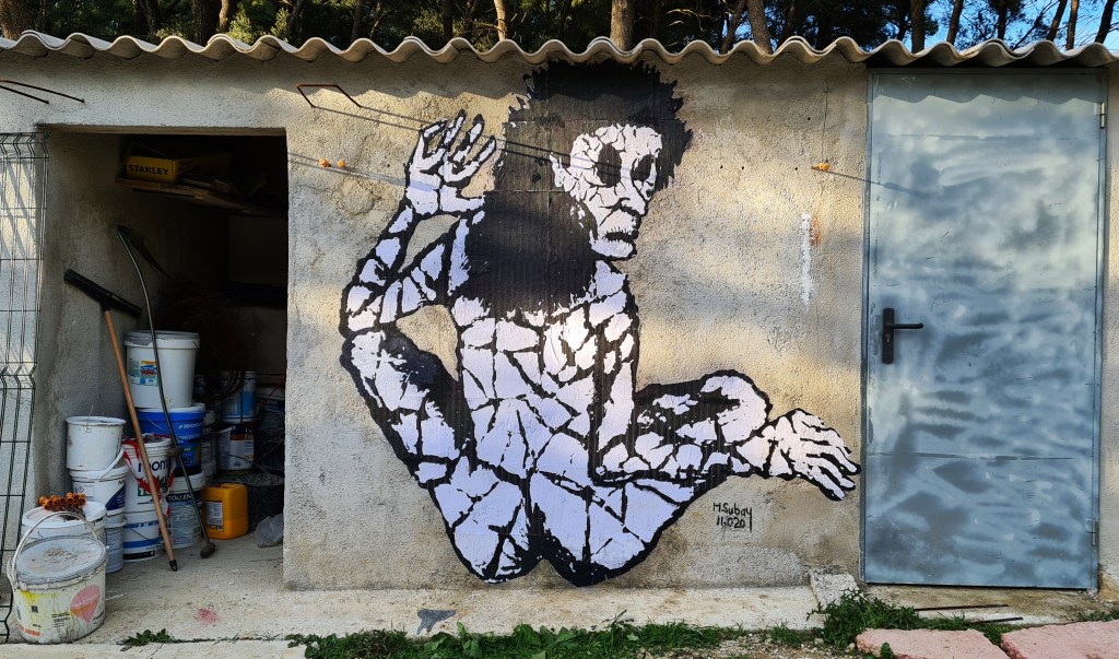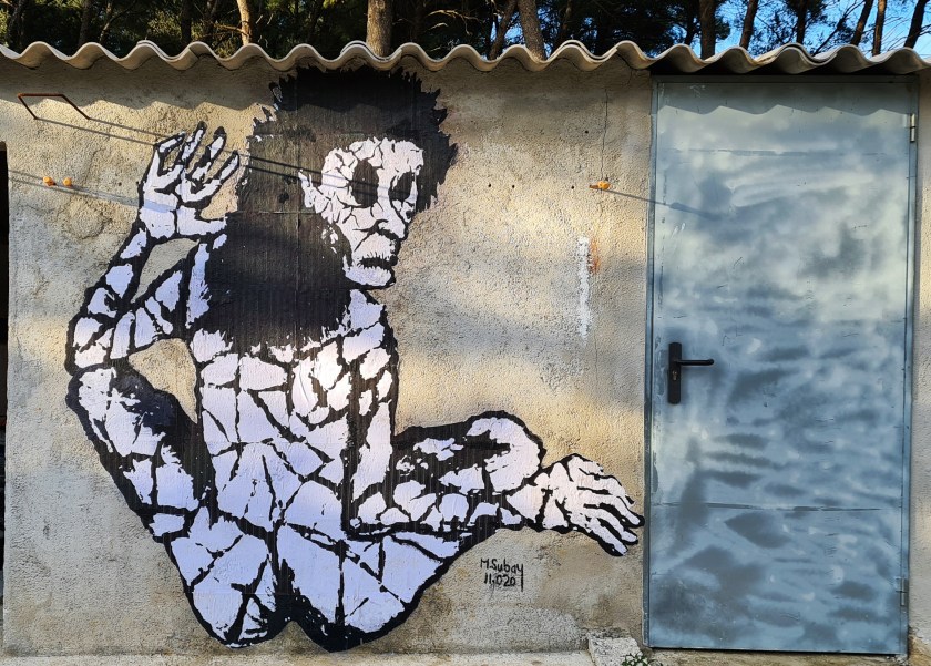 A title of my fifth mural in the “War Garden” project, Martigues, France.