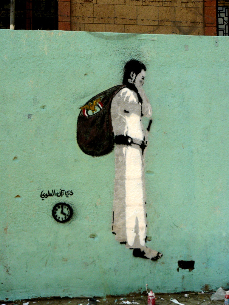 الجداريات تجدونها على الجدار المقابل لوزارة الشباب والرياضة، شارع الزبيري.
