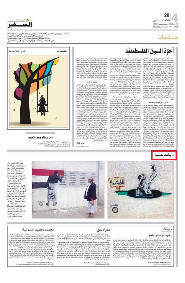 وعبر الرسام اليمني مراد سبيع في لوحة جدارية بأحد شوارع صنعاء عن المشاكل التي يواجهها اليمن اليوم ومنها الطائفية وانتشار الأسلحة وجرائم الخطف.