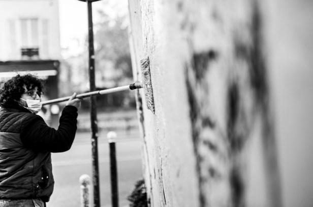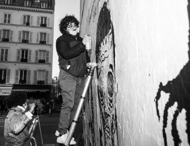 Today, in the city center of Paris, I worked on my most recent mural “Selfie Faces of War” measuring 3.2 x 8 meters, which is an extension of the virtual campaign, that I launched October 2020, where hundreds of people from around the world, took part in this action, to denounce the war in Yemen and around the world.
