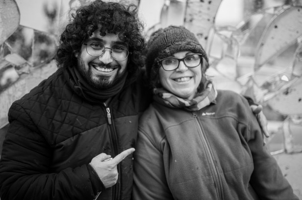 L’artiste yéménite Murad Subay prépare une œuvre à coller à Port de Bouc pour dénoncer la guerre au Yémen.