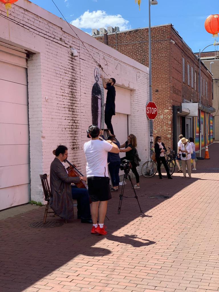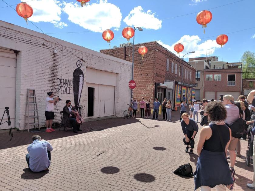 Photos from the artistic and musical event, that organized by the Yemeni Institute for Culture, Heritage and Art, Washington, DC, April 20, 2019. The event held by installing my mural “War Brand” and a musical performance by Iraqi musician “Karim Wasfi” and American artist “Marcella Kriebel.”