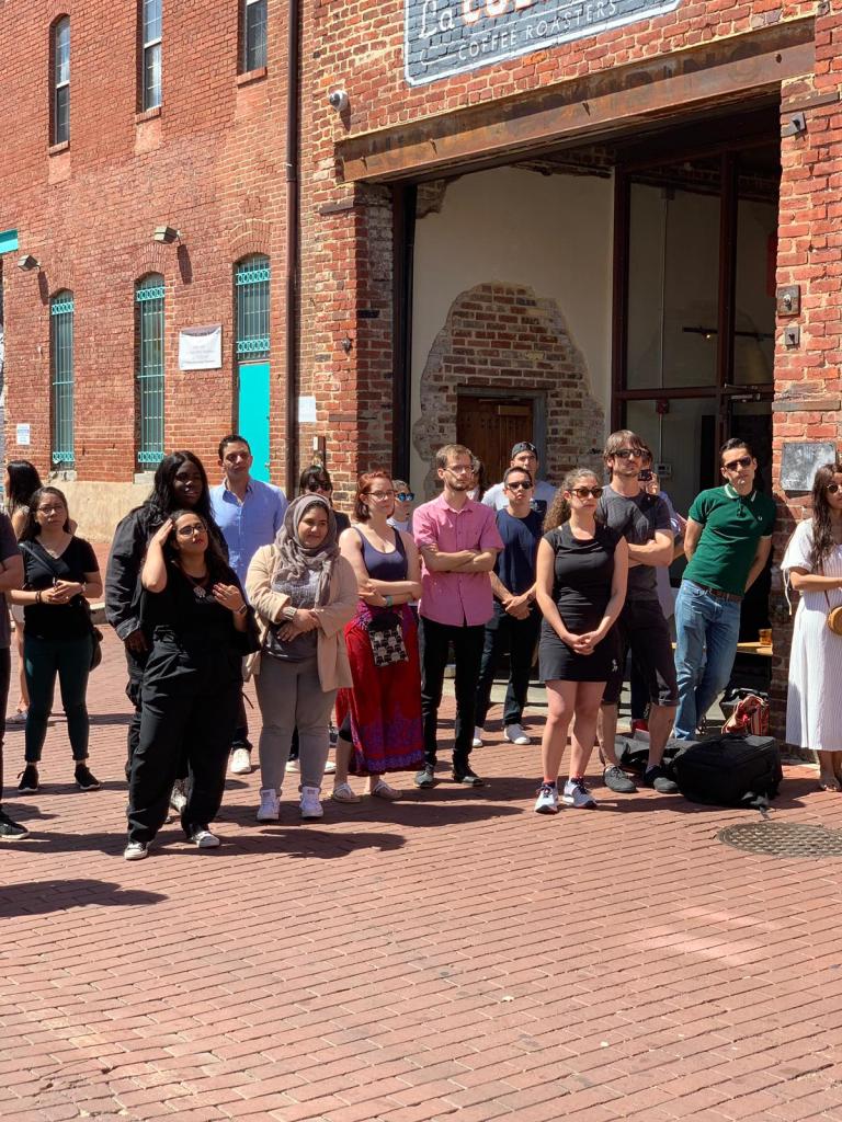 صور من الفعالية الفنية والموسيقية الذي أقامها المعهد اليمني للثقافة والتراث والفن، في العاصمة الأمريكية واشنطن, 20 إبريل 2019. إقيمت الفعالية جدارية “ماركة حرب” وعرض موسيقي من الموسيقار العراقي “كريم وصفي” والفنانة الأمريكية “مارسيلا كريبل”.