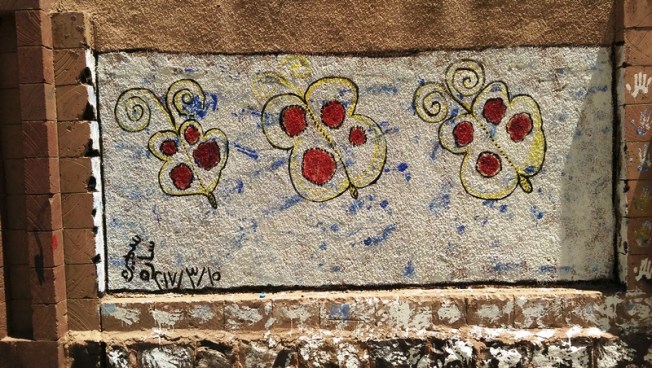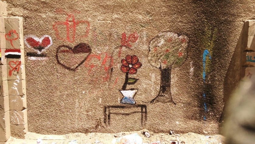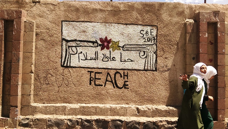 Subay, who is already an award-winning artist, seems genuinely uninterested in pursuing glory and fame for the sake of it. He daubs the walls of ruined Yemeni houses with haunting images of war and starving children, and tents for the displaced with pictures of barbed wire or dream-homes, traveling across Yemen despite the dangers – all of it “for the sake of peace.”