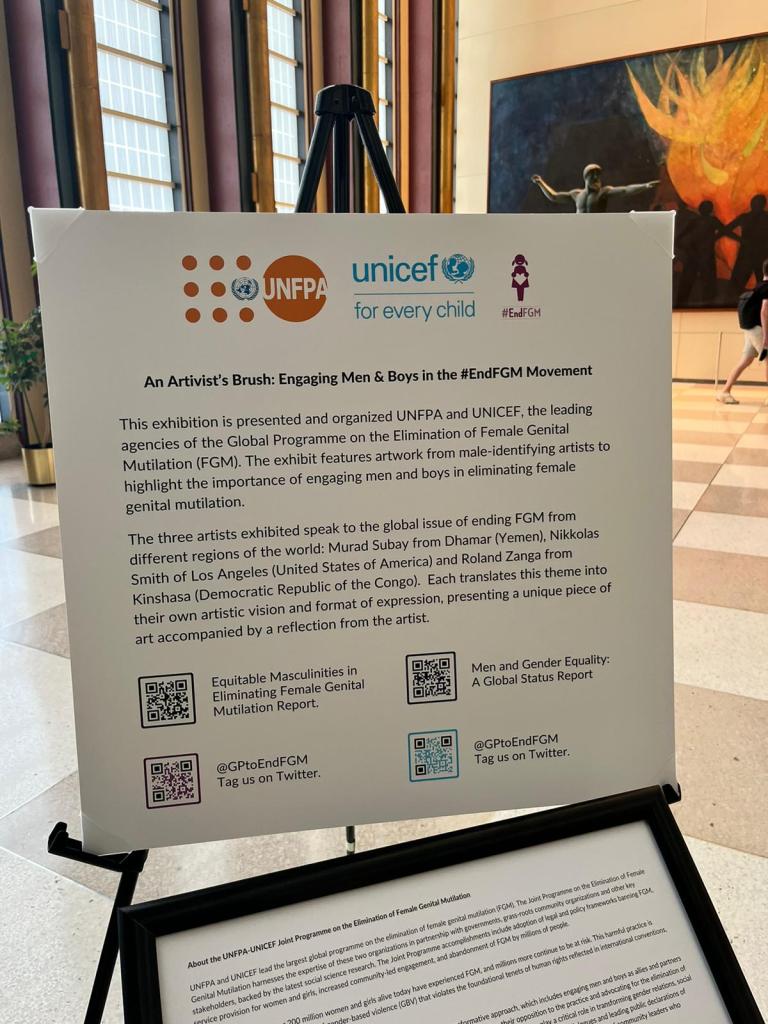 I am pleased to participate by my painting “Half Woman” in an exhibition held at the main entrance of the Headquarter of United Nations, New York. This exhibition organized by “UNICEF, UNFPA”. and will take place from 12th to 28th September 2022.