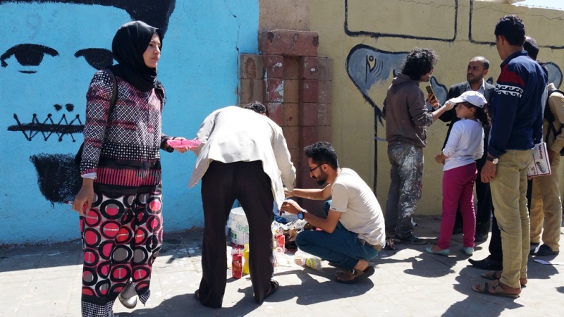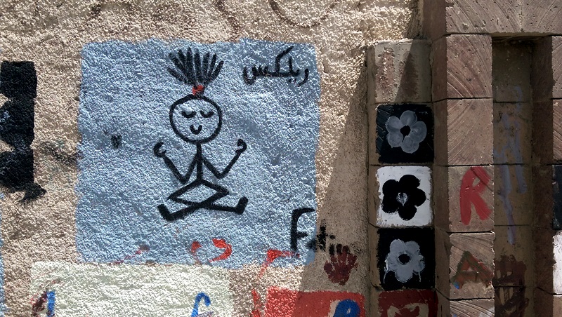 The painting process usually takes place with the help of a number of Murad’s friends and even with the help with strange people who happen to pass by and feel interested in what’s been done. Even though Murad has been occasionally harassed by different officials in power for the work he does, he praises greatly the support he has been getting from the Yemeni society – ‘that’s the main thing that keeps me going since 2012,’ he tells me. Murad believes that the significance of graffiti art lies in its power in reflecting a society’s concerns better than words.